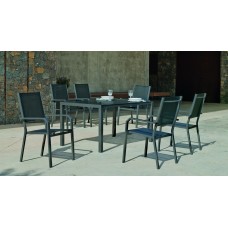 Set Salon de jardin à Manger PALMA-220 avec 6xGEMA-3 Finition ANTHRACITE Tissus GRIS FONCE TEXTILENE..
