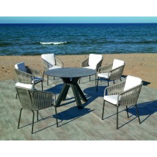 Set Table À Manger Haut De Gamme + 6 Fauteuils Valonia-150 Hpl/Tulip-3/6 Finition Anthracite / Hpl Argenta Tissus Anthracite / Corde Grise / Anais Blanc Dralon
