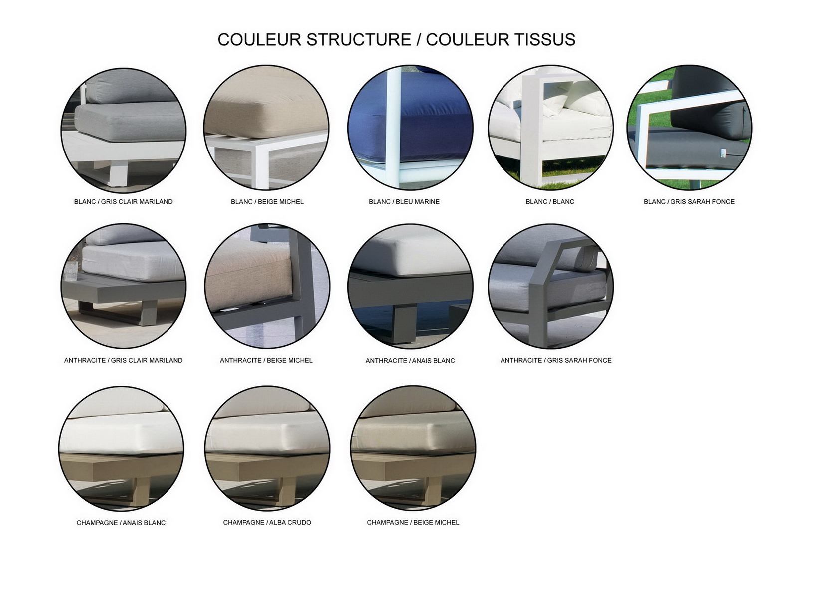 - Couleur(s) possible(s) au choix de finition de la Structure (même tarif) : BLANC, GRIS CLAIR ARGENT, ANTHRACITE