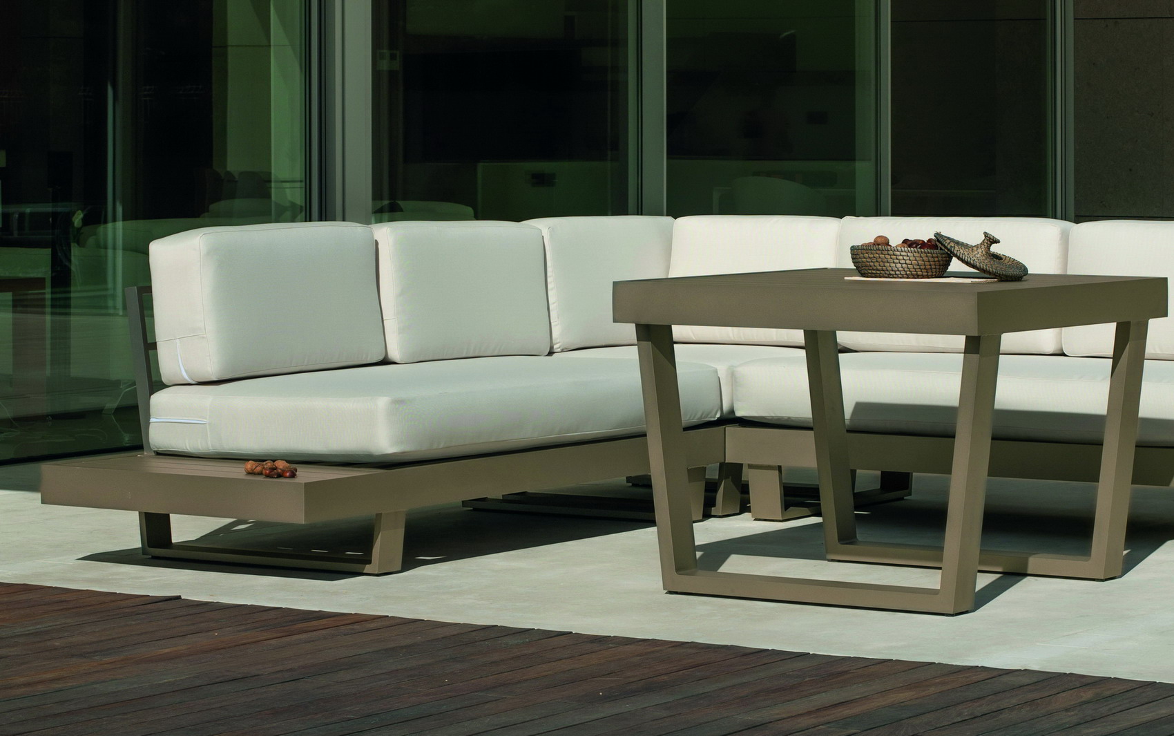 Salon De Jardin Sofa Menfis-8 Finition Champagne Tissus Alba Ecru Dralon De 4 À 6 Places