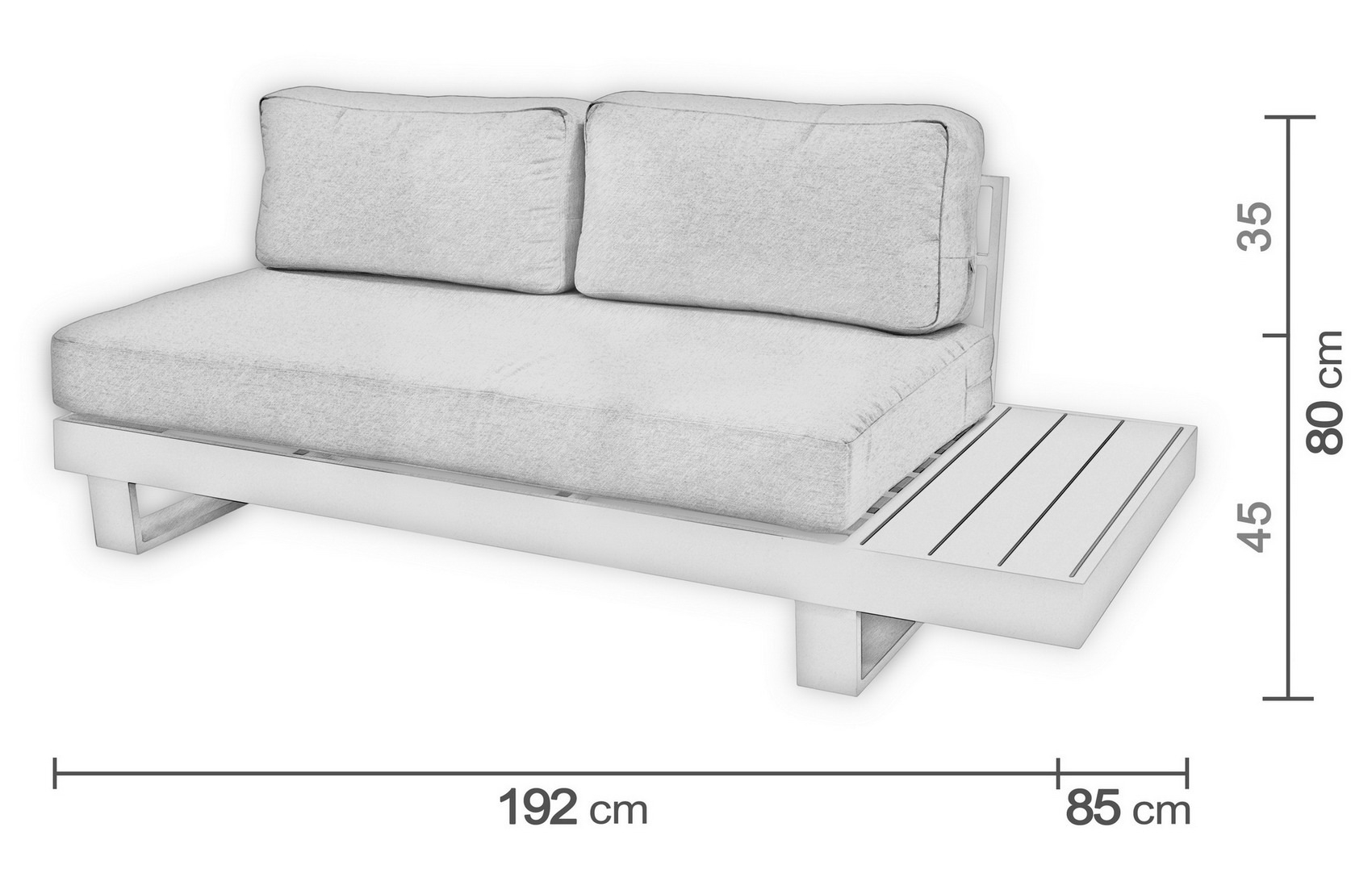 ♦ 1 unit. CANAPE 2PL ALUMINIUM TABLETTE GAUCHE 2 PL. MENFIS-22 - Dimensions Hors Tout :